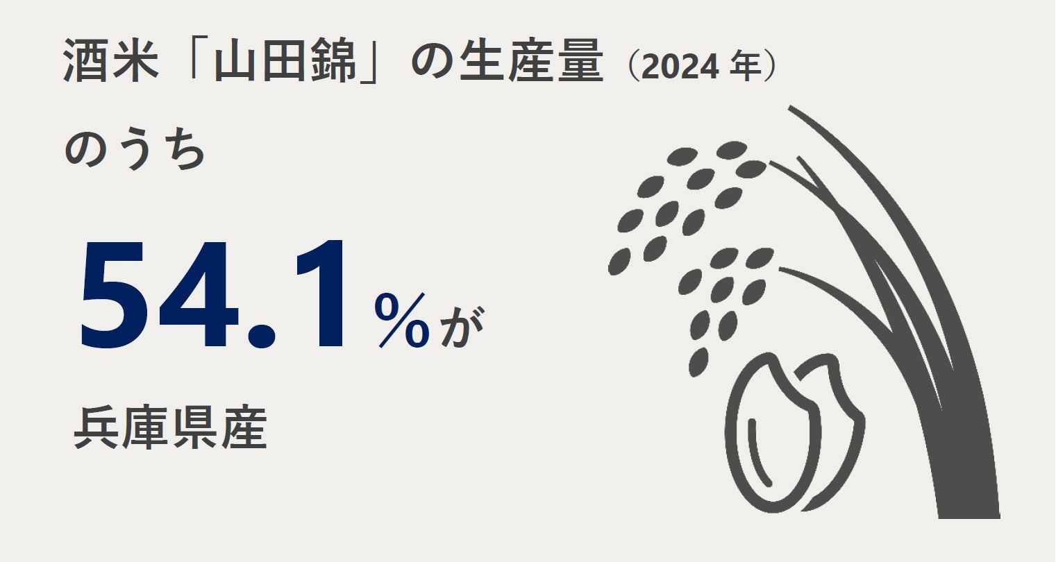 兵庫県は、国内で生産される日本酒の4分の1以上を生み出す酒どころでありながら、酒米(酒造好適米)の一大生産地でもあります。酒米の代表的な品種である山田錦は1936年に兵庫の地で産声を上げた「「酒米の王様」。その半分以上が、兵庫県内で生産されています。