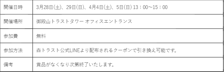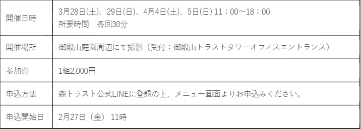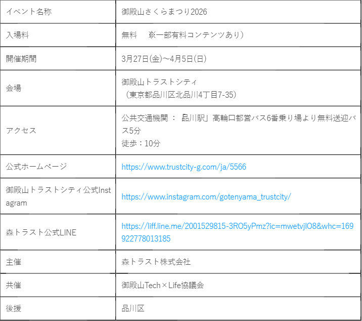 森トラスト株式会社は、3月27日(金)から4月5日(日)まで、品川駅徒歩10分に位置する御殿山(ごてんやま)トラストシティにて、「御殿山さくらまつり2026」を開催いたします。