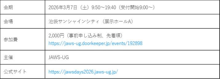 JAWS DAYSは、日本全国に60以上の支部を持つAmazon Web Services(以下、AWS)のユーザーグループであるJAWS-UGが主催し、アマゾン ウェブ サービス ジャパン合同会社が後援するJAWS-UG最大のイベントです。