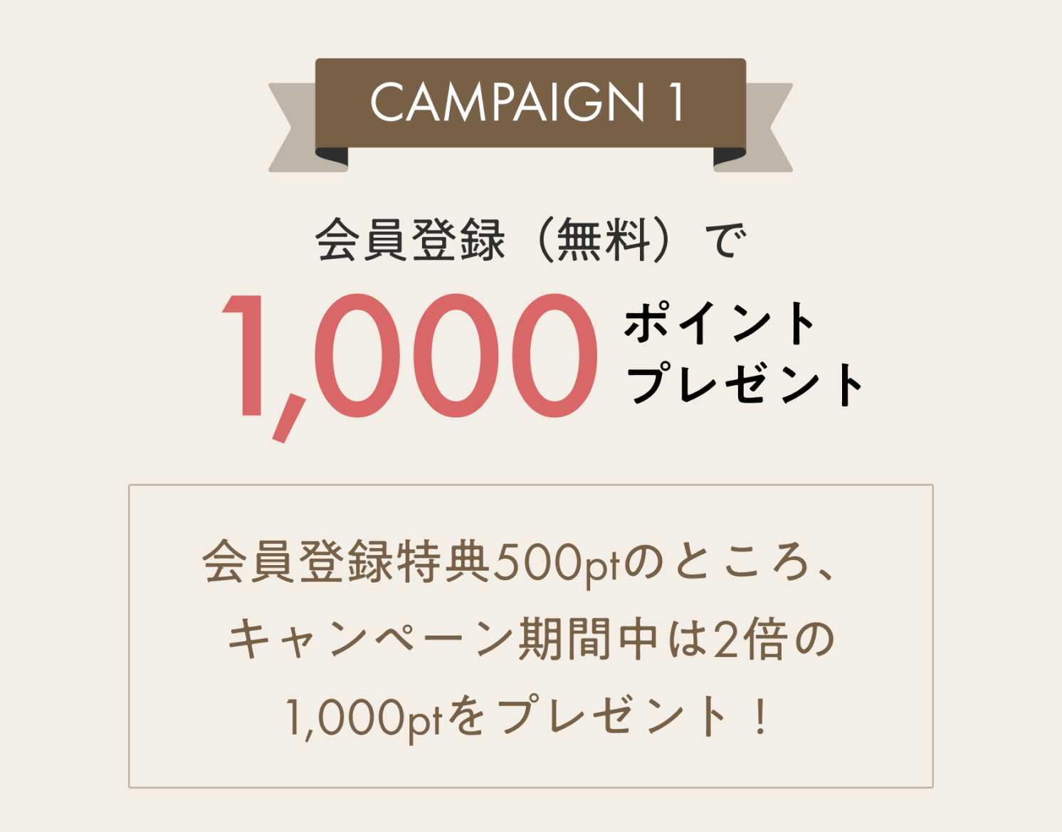 通常500ポイントの会員登録特典を、キャンペーン期間中は2倍の1,000ポイントに増量いたします。