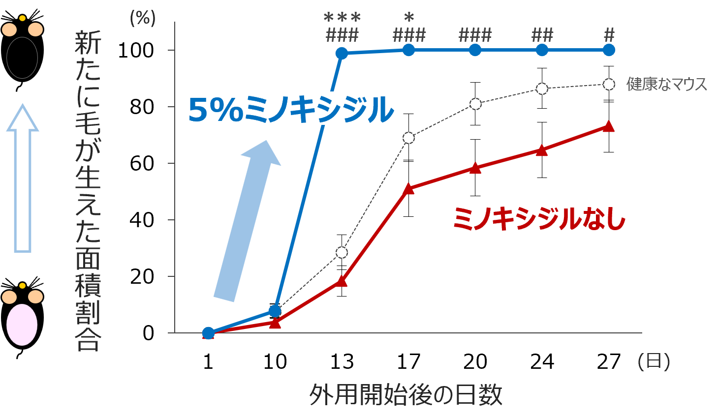 5%ミノキシジル製剤の外用により早期に新たな毛の成長が促進した