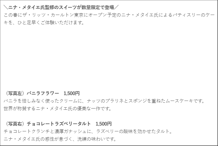 ●ザ・リッツ・カールトン東京考案の春を感じるオリジナルスイーツやフード