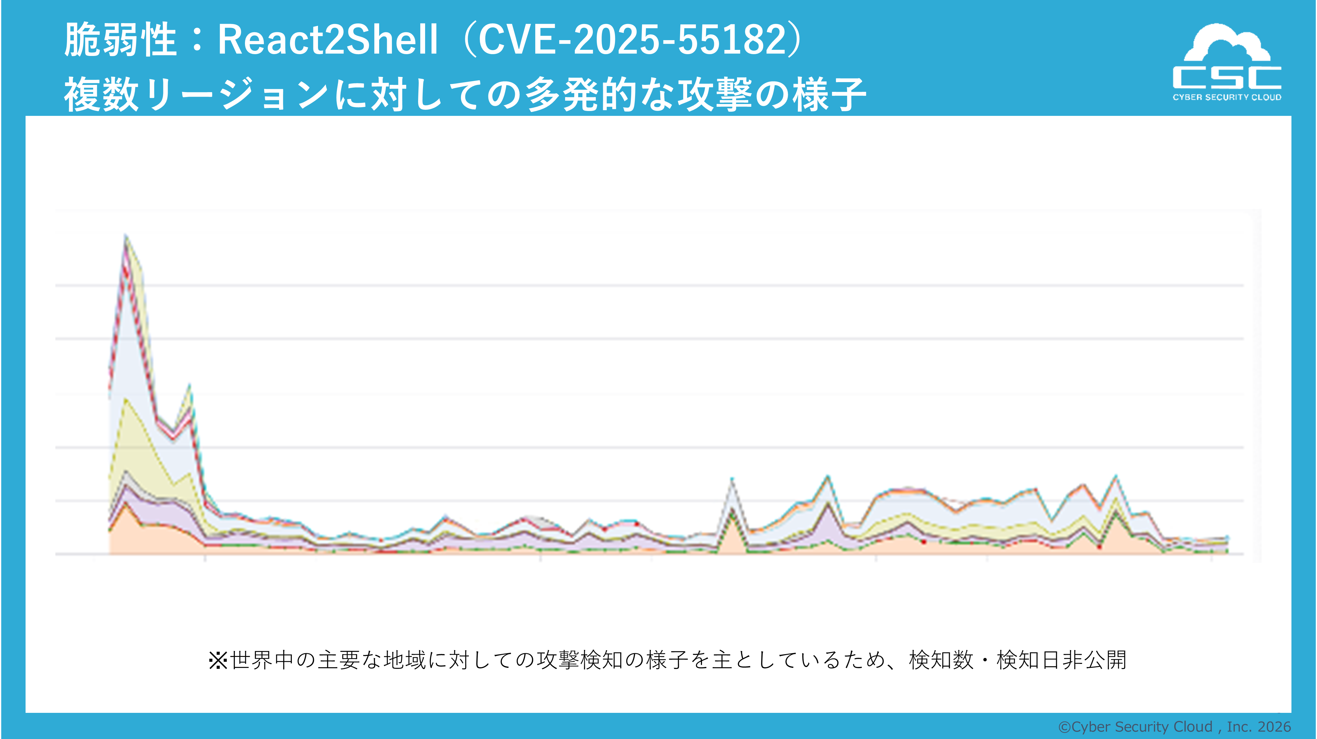 2025年10月~12月には、特定の脆弱性に対して短時間に大量のリクエストが集中するリクエストの傾向が複数回観測されました。