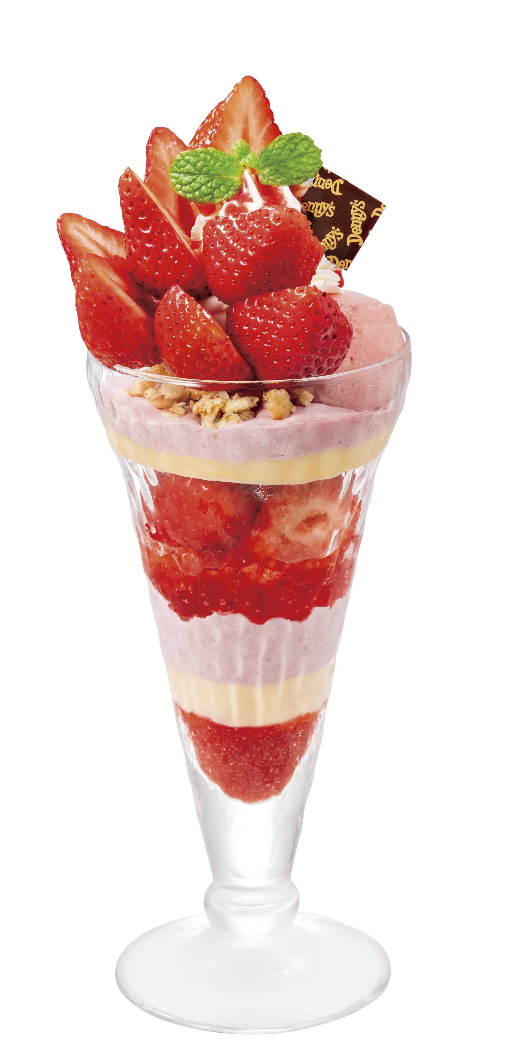 フレッシュないちごの果実をそのまま! 素材にこだわるデニーズだからこそ、自信をもっておすすめできるデザートです。旬のいちごは、果汁たっぷりでジューシー。爽やかな香りと濃厚な甘さがたまりません。