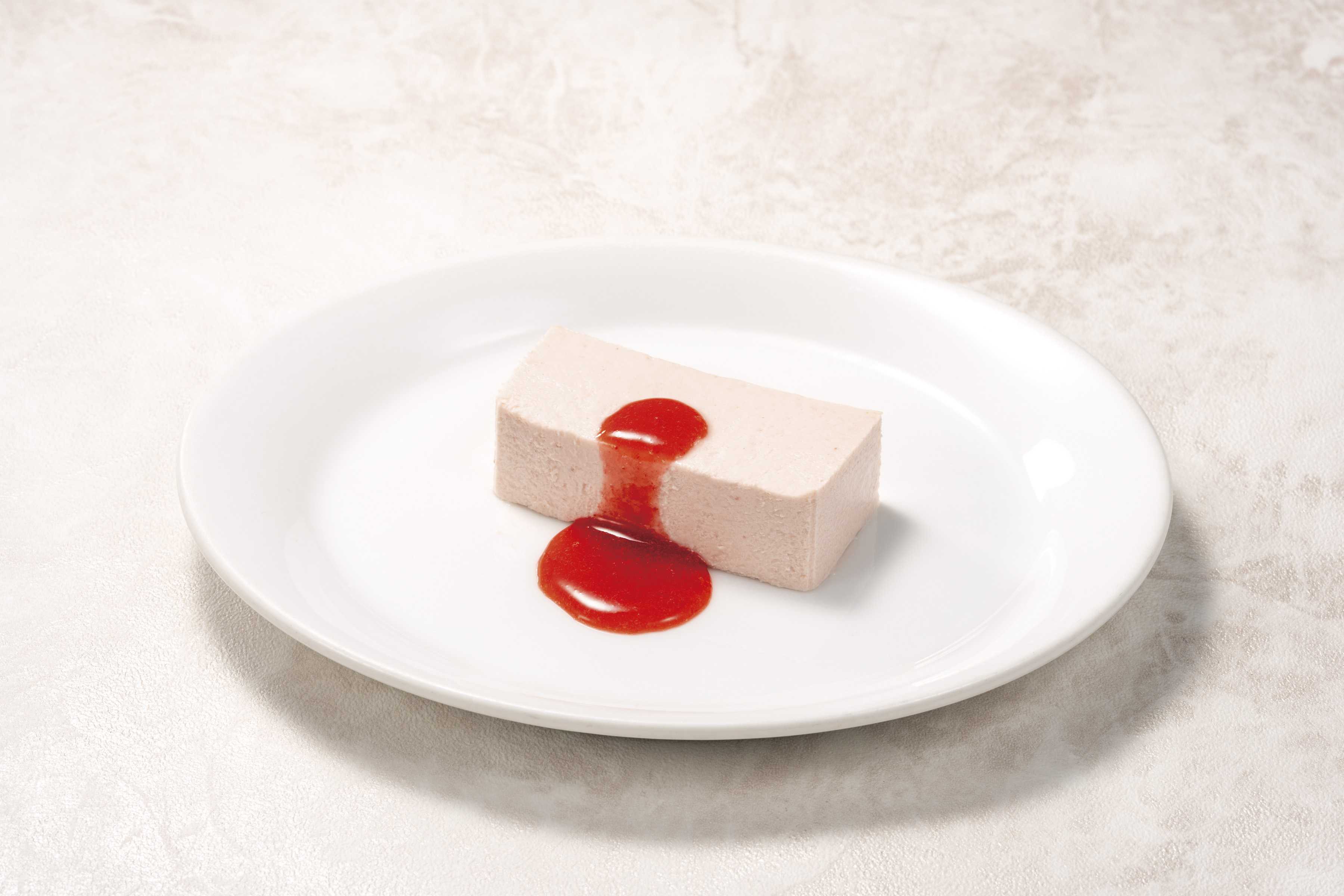 セミフレッドは、イタリア語で「半分冷たい」という意味をもつ、アイスのような、ケーキのような、なめらかな食感を楽しめるスイーツです。いちごソースを添えたお手軽なデザートを是非お楽しみください。