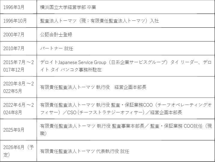 有限責任監査法人トーマツ 執行役 監査事業本部長/監査・保証業務COO(チーフオペレーティングオフィサー)