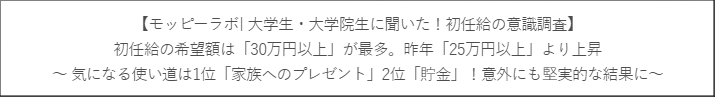 株式会社セレス(以下、当社)は、当社が運営するポイントサイト「モッピー」のアンケート調査「モッピーラボ」において、 2026年2月14日(土)~2026年2月16日(月)までの間、全国の大学生・大学院生を対象に「初任給の意識調査」を実施しました。昨今、物価高騰や人手不足を背景とした「初任給引き上げ」の動きが加速しています。