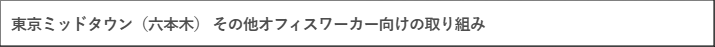 その他にも東京ミッドタウンでは企業対抗のフットサル大会や防災ツアーなど、オフィスワーカーに向けた施策に取り組んでおり、今後もこのような施策を通じて、東京ミッドタウンが「単なる働く場所」という領域を超え、ソフト面からも交流を育むプラットフォームとして愛される存在となることを目指していきます。