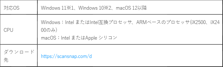 ※1 iX2500、iX2400以外のScanSnapはARM ベースのWindows PCでは動作しません。