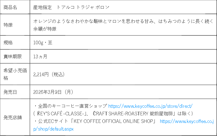 今回は、当社が現地で毎年開催する「KEY COFFEE AWARD」にて、良質なコーヒーを生産するエリアとして表彰された『ボロン』の「トアルコ トラジャ」を商品化。3月9日(月)より数量限定で発売します。