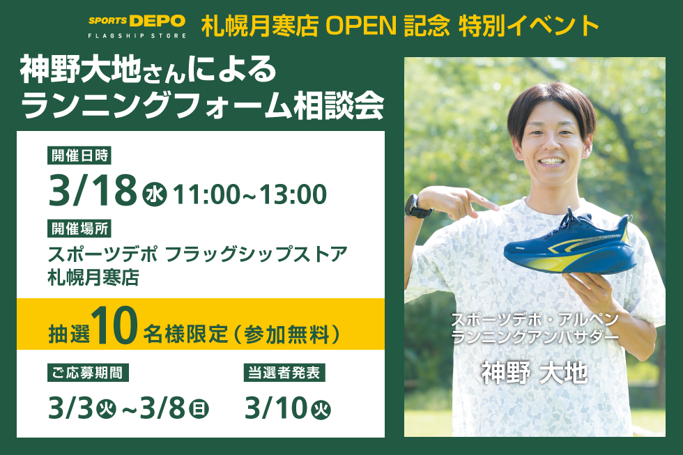 対象店舗:スポーツデポフラッグシップストア札幌月寒店、スポーツデポ光星店、スポーツデポ大曲店、