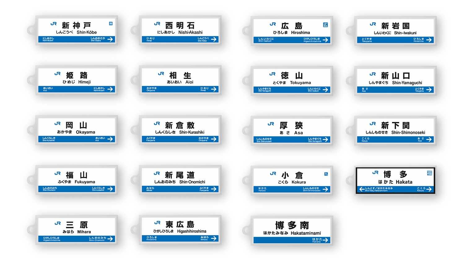 <山陽新幹線・博多南線編> 単品:各550円 19駅セット:10,450円