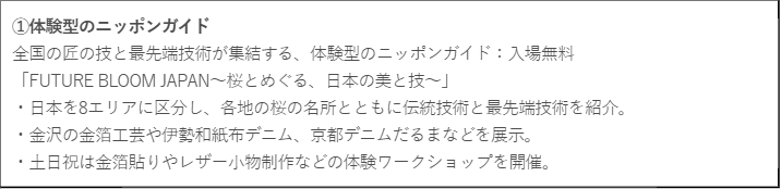 ●「FUTURE BLOOM JAPAN ~桜とめぐる、日本の美と技~」:入場無料