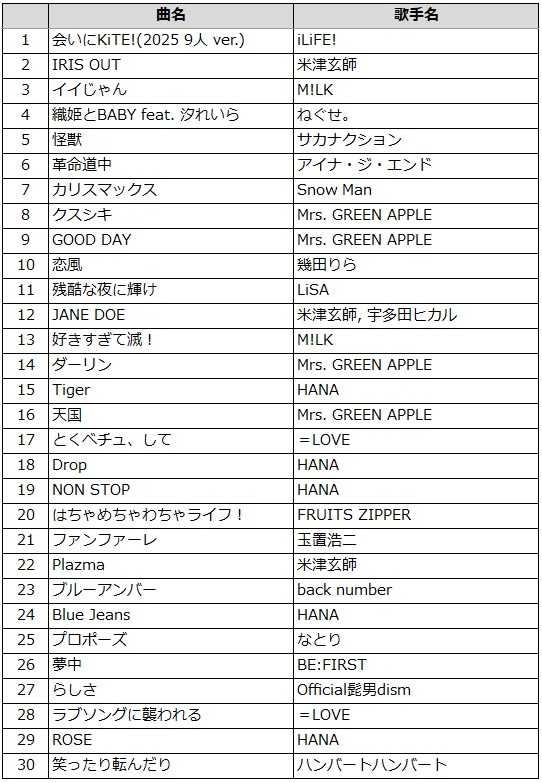 ・対象楽曲:2025年1月1日~12月31日の間にリリースされた楽曲