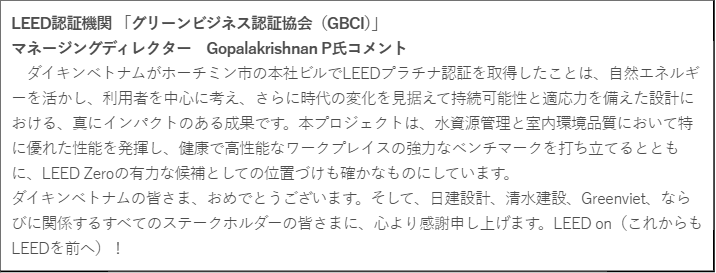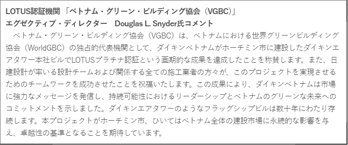 ※LOTUS認証について:https://vgbc.vn/en/rating-systems/