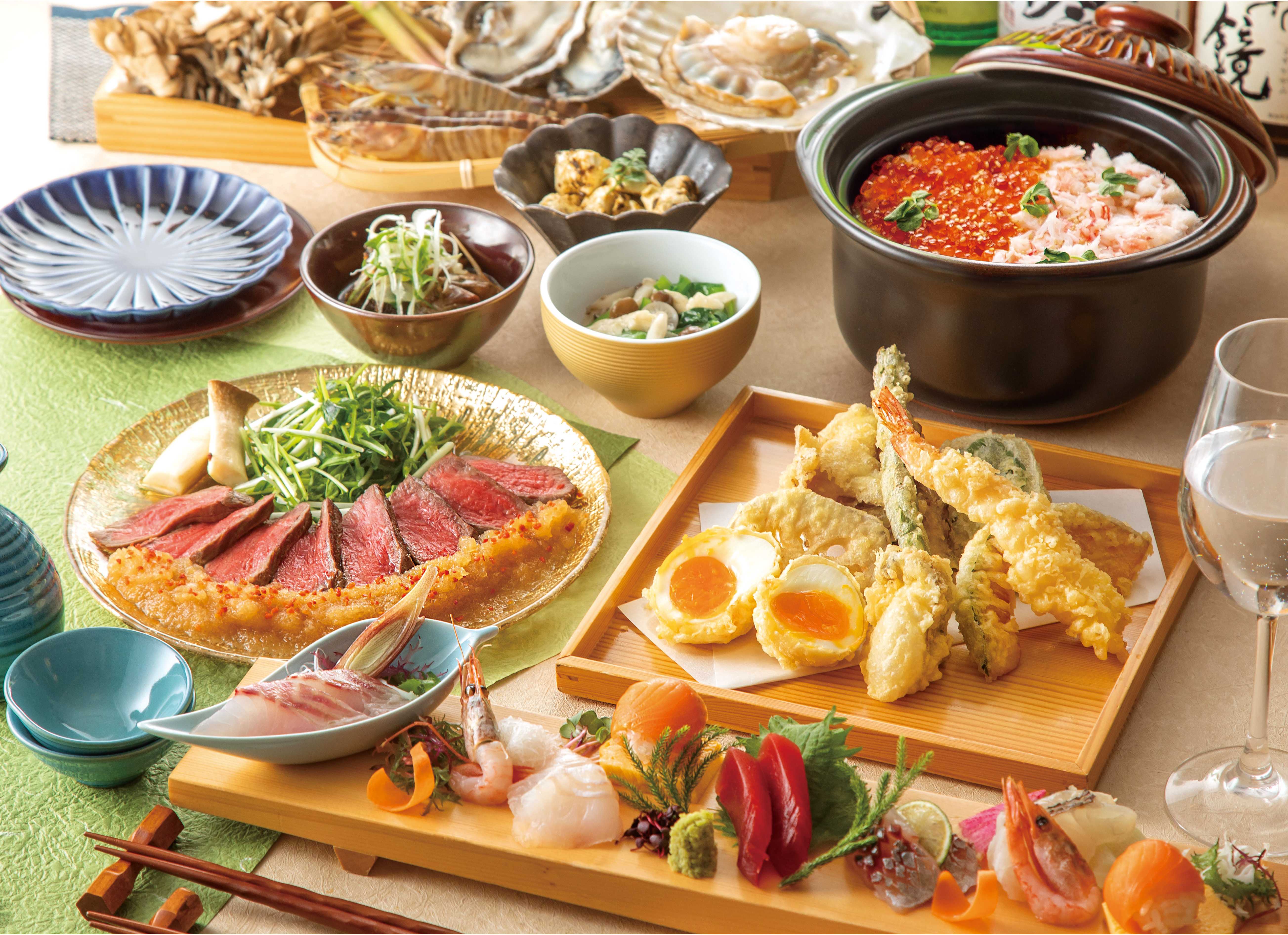 和食に洋のエッセンスを融合させた創作料理や天ぷら、土鍋ごはんなどを日本酒中心の多彩なドリンクメニューとともに提供します。