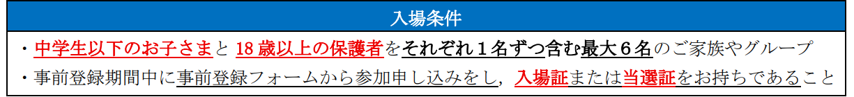 ・上記注意事項を守っていただけない場合,ご入場をお断りする場合もございますので,あらかじめご了承ください。