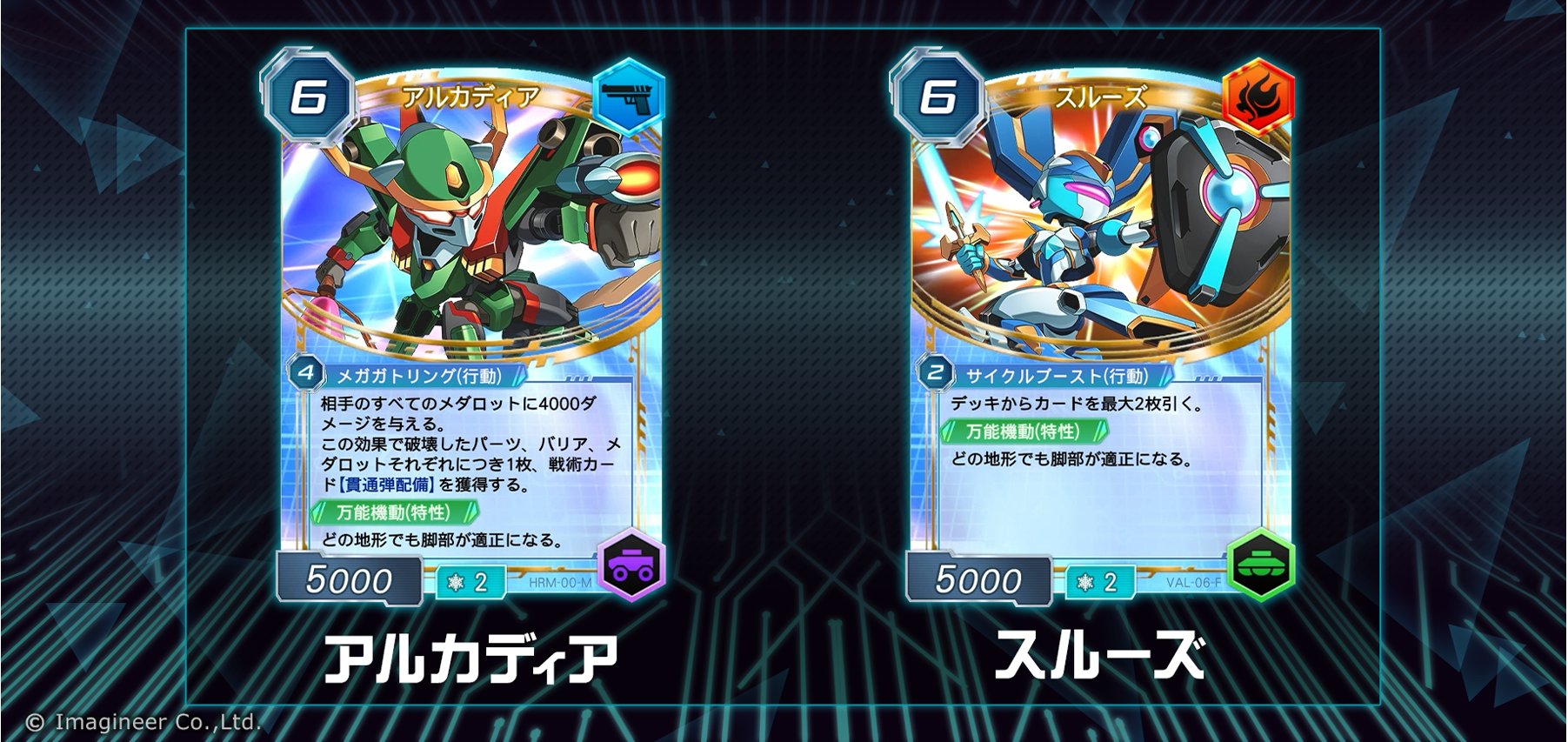 新メダロット、アルカディア(ヘルメス型メダロット)」と「スルーズ(ヴァルキュリア型メダロット)」