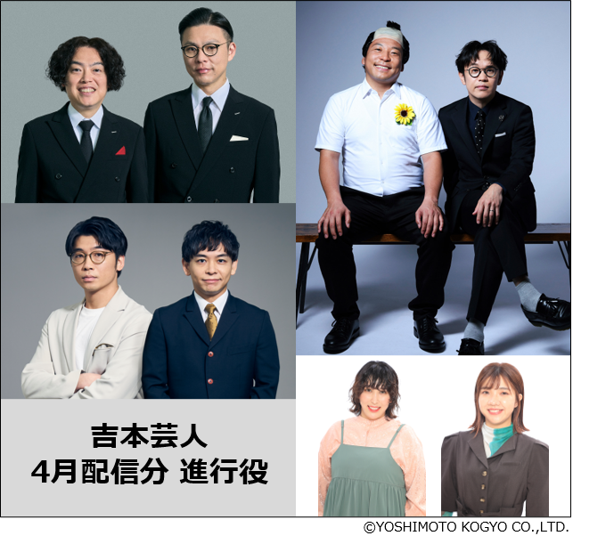 渋谷凪咲さんをナビゲーターとし、吉本興業株式会社に所属するお笑い芸人(以下、吉本芸人)が進行役としてプログラムを盛り上げます。