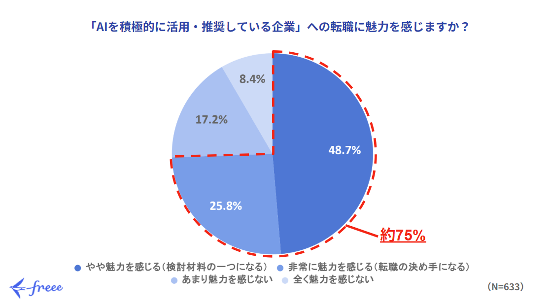 ■若手従業員の74.5%が「AIを積極的に活用・推奨している企業」への転職に魅力を感じると回答