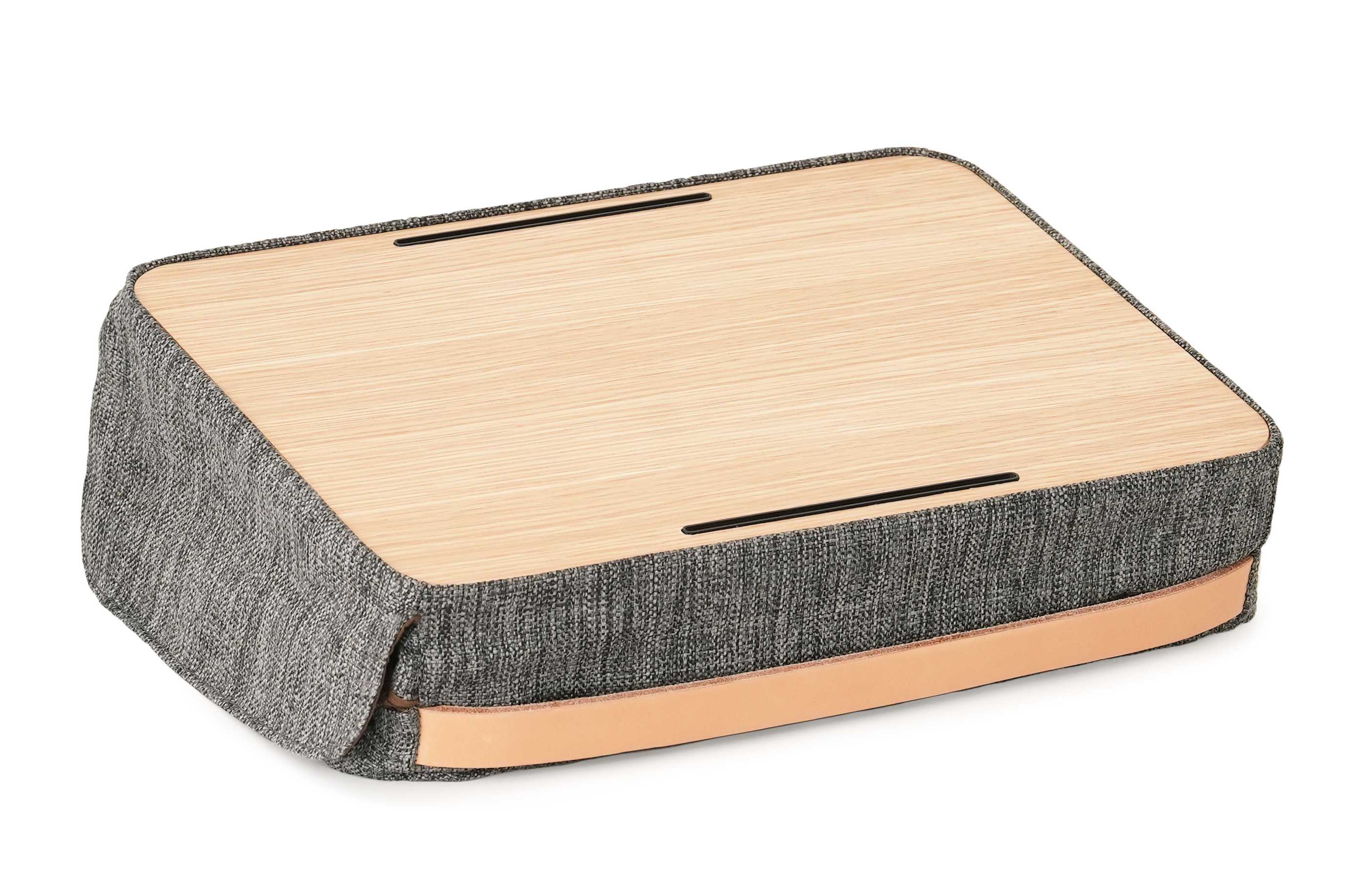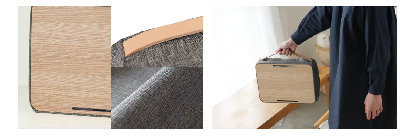 機能性だけではなく、木製天板、家具用生地、本革ハンドルを採用することで、小さくても家具として長く使い続けられるデザインに仕上げています。