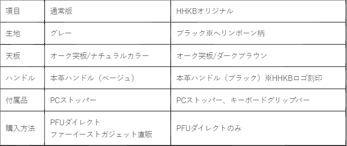 さらに、HHKBを様々な角度で使用した場合の滑り落ちを防ぐ「グリップバー」を本商品にのみ付属(通常は別売オプション)。HHKBの使用を想定した特別仕様モデルです。