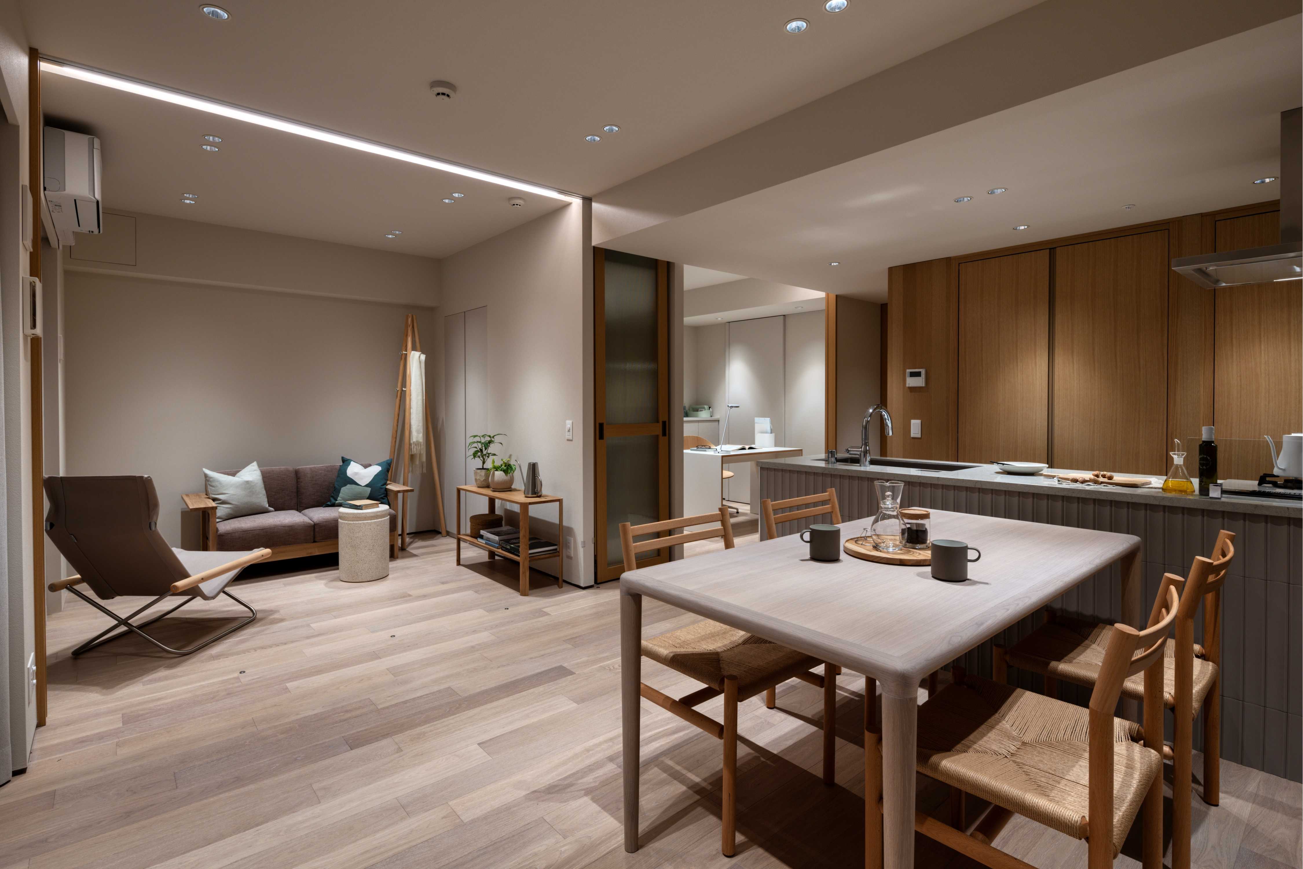 本ギャラリーでは、プランセレクト(間取り変更)を採用した住戸など2タイプのモデルルームに加え、本開発区域の全体像を再現した模型などを展示しています。これらの展示を通して、ブランドコンセプトである「街と柔らかくつながり、住む人にも、街にも愛される住まい」をお伝えし、体感いただける空間となっています。