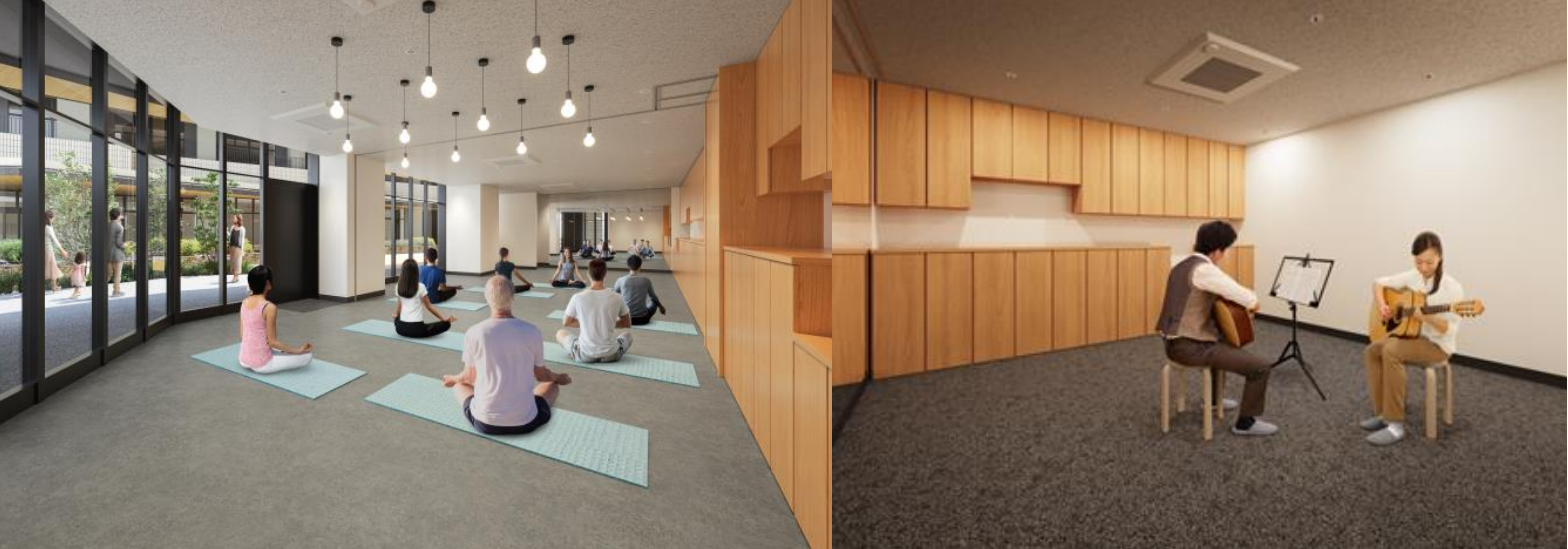 他にも入居者の趣味や文化活動の領域を広げる多目的スペース「スタジオ」を3区画用意しました。ダンスやヨガ等といった運動から、楽器演奏などの音楽活動まで幅広く利用することができ、日常のお子さまの遊び場としても活用いただけます。