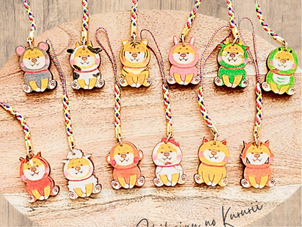 宇都宮市の柴犬作家による「笑顔を紡ぐ柴犬のかたち」をコンセプトにした手作り雑貨販売。人気の十二支をまとった柴犬の表情がかわいい根付けや手作りの縁起物羊毛フェルト作品も販売します。 縁起物十二支柴犬1,300円、縁起物羊毛フェルト3,000円~(※写真はイメージです)