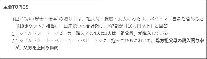 TOPIC2●チャイルドシート・ベビーカー購入者の4人に1人は「祖父母」が購入