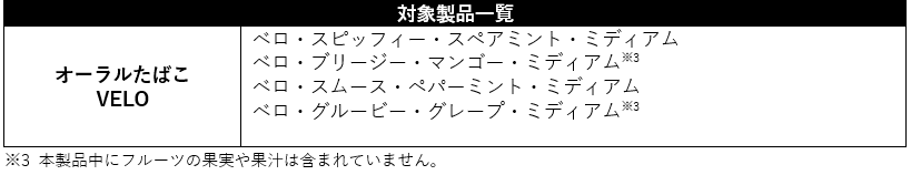 オーラルたばこ「VELO」は、白いパウチを唇の内側にセットするだけで、たばこの刺激を味わえるスウェーデン生まれの無煙たばこです。火やデバイスを使用せず、たばこ葉を燃焼も加熱もしないため、煙やニオイを出さず、ハンズフリーで使用できることから、ゲーム中やライブ鑑賞中など熱中する時間を邪魔せず、また電車や飛行機などでの移動中など多様なシーンでいつでもどこでも楽しめることが特長です。