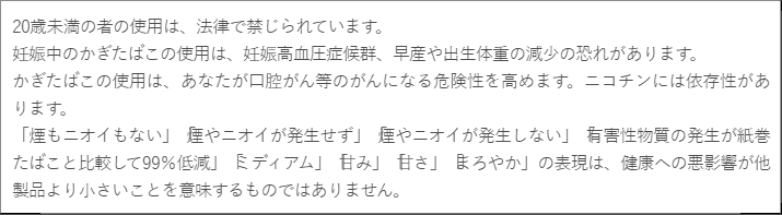 BATグループでは、たばこ製品のマーケティングを適切に実施するために国際的な自主規準を設定しています。そのため消費者に対するたばこ製品に関するすべてのコミュニケーションには、20歳未満の方へのコミュニケーションをお控えいただくとともに、「喫煙と健康に関する注意文言」を表示することを関係各位にお願いしております。オーラルたばこに関しては、記事掲載していただく際には、「健康に関する注意文言」が表示されるようご配慮いただきたく存じます。ご協力の程、何卒よろしくお願い申し上げます。