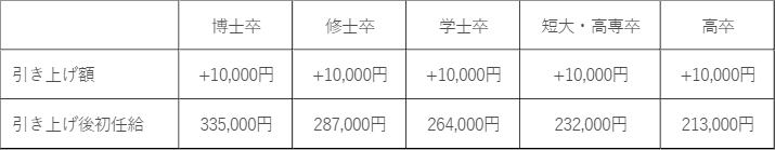 実施内容 : 新卒初任給を下表のとおり引き上げ