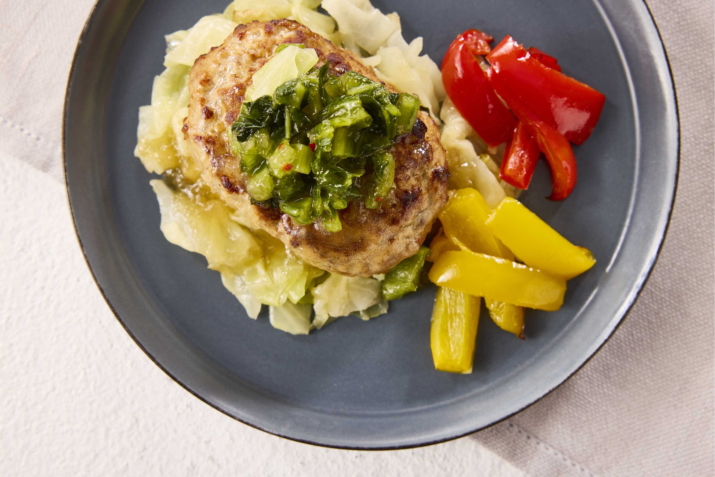 郷土が育む食 たっぷり野菜と広島菜漬ハンバーグ 880円(1個)