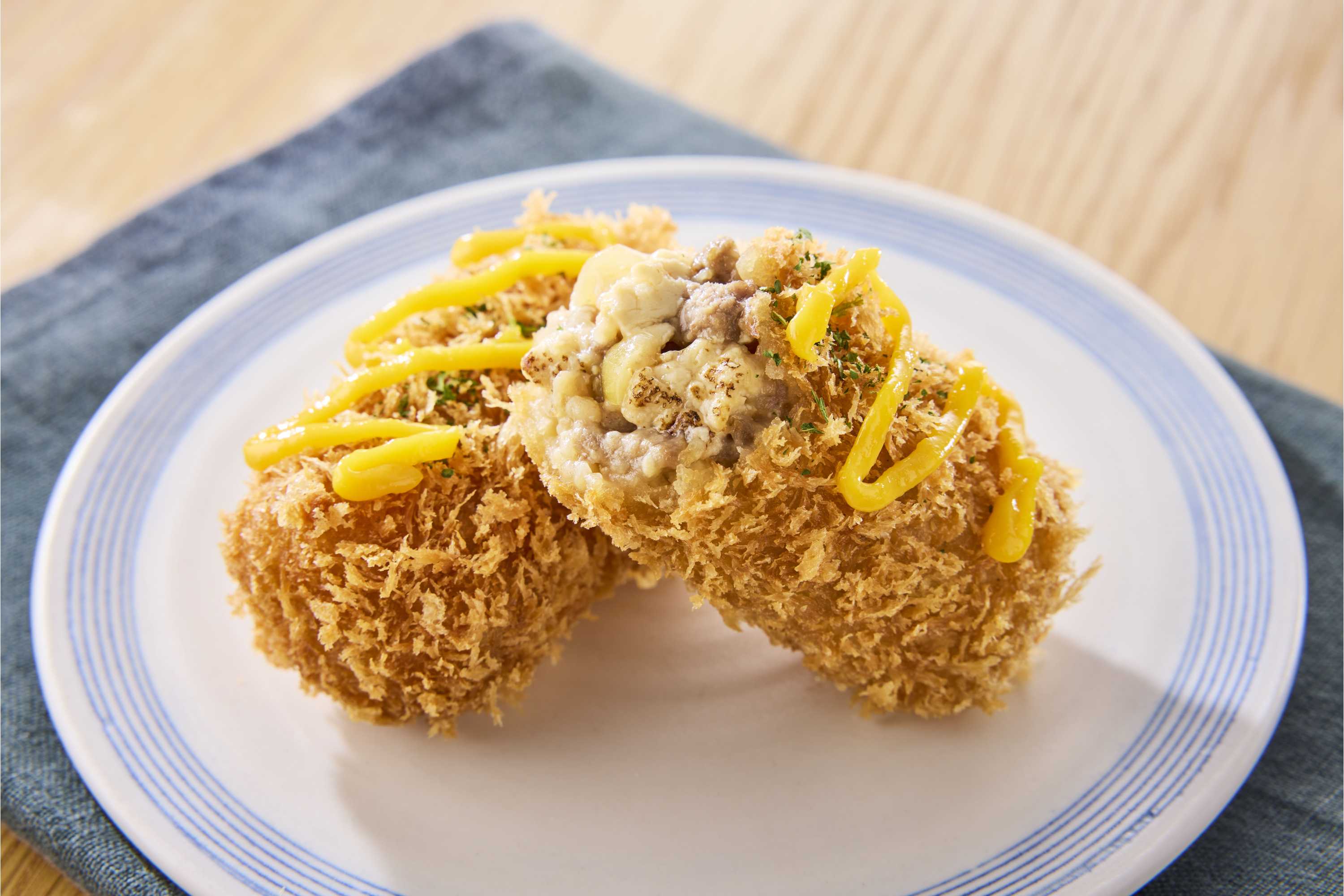 「こってり好きだけれど、重くなりすぎない食事を楽しみたい」というお客様の声に応えて企画しました。お肉の旨みと甘辛い味付けで満足感はありつつ、豆腐入りなのでライトな食べ応えのすき焼きコロッケ。まろやかな黄身ソースをかけて、ご飯のおかずになる味わいです。