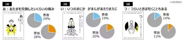 「片頭痛患者さんと家族、医師対象の意識調査結果を発表患者さん・家族が選ぶ“片頭痛とともに生きていくつらさ”のTOP3は完全一致一方、痛みや日常生活への影響の程度理解には最大2割のギャップ」の画像