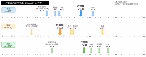 「片頭痛患者さんと家族、医師対象の意識調査結果を発表患者さん・家族が選ぶ“片頭痛とともに生きていくつらさ”のTOP3は完全一致一方、痛みや日常生活への影響の程度理解には最大2割のギャップ」の画像