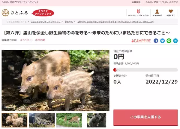 事業名:【第六弾】里山を保全し野生動物の命を守る~未来のためにいま私たちにできること~