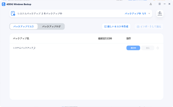 バックアップ管理:タスク管理ダッシュボードにより、複数のバックアップを簡単に作成・管理。