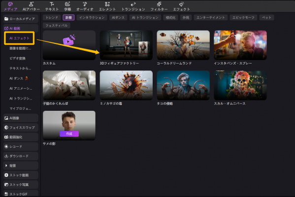 Step1.AIエフェクトを開き、「新着」から3Dフィギュアファクトリーを選択