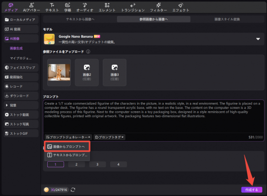 Step4.フィギュア化のプロンプト(指示文)を入力