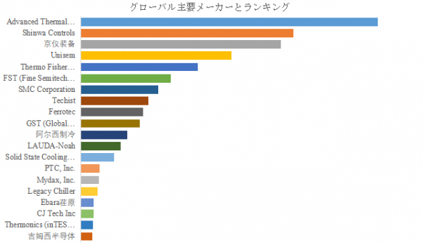 LP Informationのトップ企業研究センターによると、半導体チラー の世界的な主要製造業者には、Advanced Thermal Sciences (ATS)、Shinwa Controls、京?装?、Unisem、Thermo Fisher Scientific、FST (Fine Semitech Corp)、SMC Corporation、Techist、Ferrotec、GST (Global Standarard Technology)などが含まれている。2024年、世界のトップ5企業は売上の観点から約59.0%の市場シェアを持っていた。