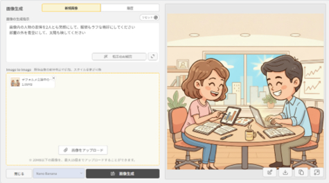 今回追加された「Gemini 2.5 Flash Image (Nano Banana)」モデルは、元画像の特徴を維持したままの画像生成や、テキストの調整などの画像編集に優れた性能を発揮します。
