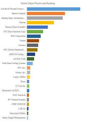 業界の競争環境を見ると、Advanced Thermal Sciences (ATS)、Shinwa Controls、Beijing Jingyi Automation Equipment Technology、Unisem、Thermo Fisher Scientific、FST (Fine Semitech Corp)、Techist、SMC Corporation、Ferrotec、GST (Global Standard Technology)といった企業がグローバル市場をリードしている。2024年時点で世界のトップ10企業は売上ベースで約78.0%のシェアを占めており、寡占的な構造を形成している。これらの企業は技術力と信頼性を武器に、製品の差別化やアフターサービス体制の強化を進めている。特にATSやShinwa Controlsはプロセス装置メーカーとの緊密な協業を進め、統合的なソリューション提案によって存在感を高めている。