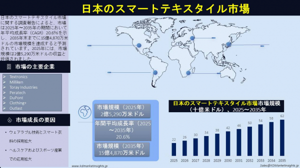 日本のスマートテキスタイル市場規模、シェア、成長要因、セグメンテーション、メーカーおよび将来展望
