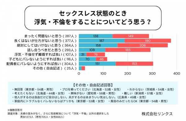 浮気・不倫以外の方法を選んだ人に対し、「セックスレス状態で浮気・不倫をすること」への考えを尋ねました。