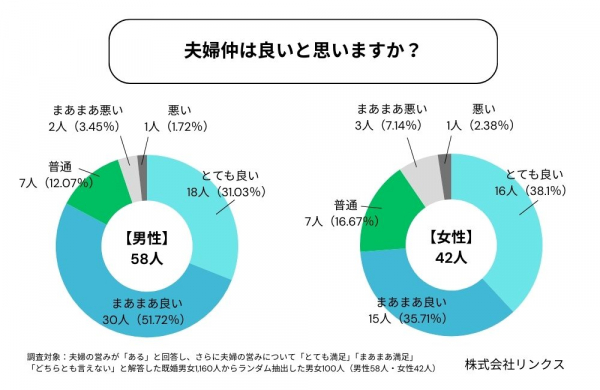 対象者:既婚男女3,000人中、「夫婦の営みがある」かつ「とても満足/まあまあ満足/どちらとも言えない」と回答した1,160人からランダム抽出した100人