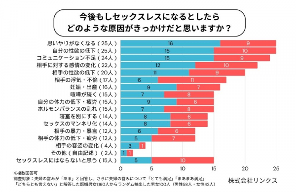 ■ セックスレスの原因、「思いやりの欠如」と「性欲の低下」が最多