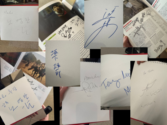 最終日のクロージングセレモニー後、関係者出入り口付近で待機した結果、本来の目的であったサインを多数集めることには成功しました。