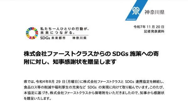 ロス削減プラットフォームのファーストクラスは、2008年に創業し「明日の普通を創り続ける」の理念のもと、ECサイトの運営、ポイント交換、自治体職員向けカタログギフトの企画事業を展開。2019年より日々の買い物が自然と社会貢献となる仕組みとして、社会貢献型職域販売サービス「クローズドマート」を開始。2022年8月「SDGs連携協定(クローズドマートの活用に関する個別協定)」を締結。2024年3月「内閣府 地方創生SDGs官民連携プラットフォーム」で神奈川県と共同で優良事例を受賞。